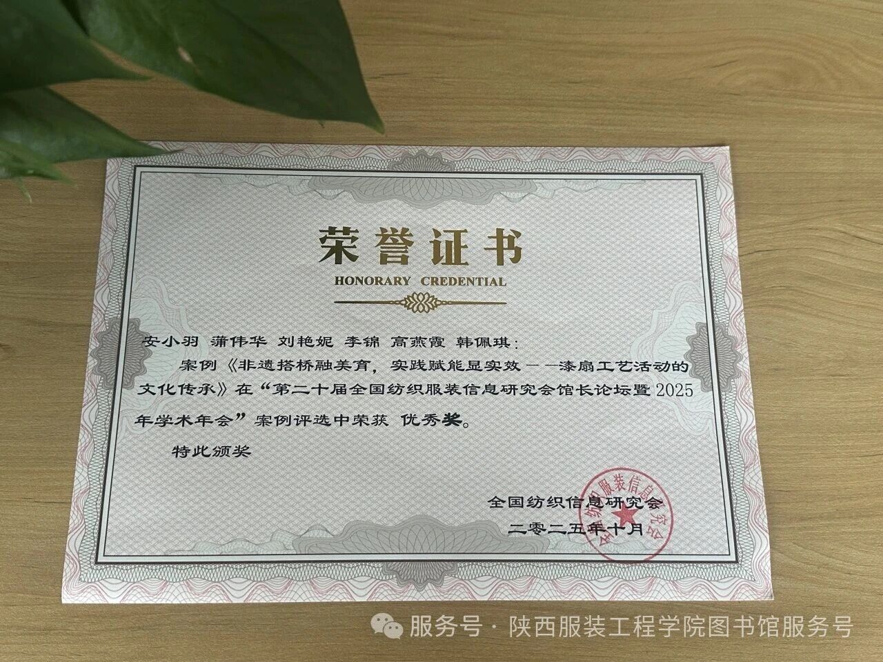 图书馆团队提交的《季羡林特藏室助力书香社会建设——陕西服装工程学院图书馆特色化阅读推广实践与启示》和《非遗搭桥融美育,实践赋能显实效——漆扇工艺活动的文化传承》两个案例获得优秀奖